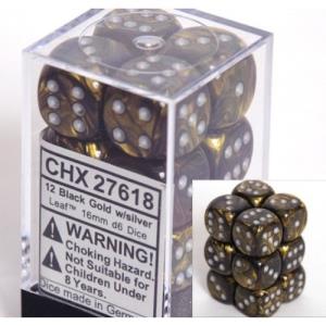 Diceblock - 12 16mm D6 - Leaf Black Gold with Silver (CHX27618)