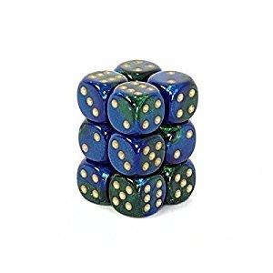 Diceblock - 12 16mm D6 - Gemini Blue-Green with Gold (CHX26636)