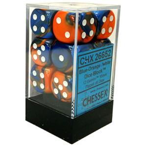 Diceblock - 12 16mm D6 - Gemini Blue-Orange with White (CHX26652)