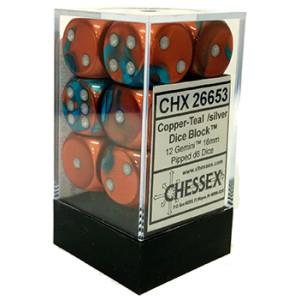 Diceblock - 12 16mm D6 - Gemini Copper-Teal with Silver (CHX26653)
