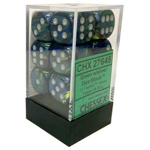 Diceblock - 12 16mm D6 - Festive green with Silver (CHX27645)