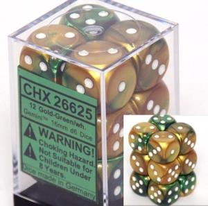 Diceblock - 12 16mm D6 - Gemini Gold-Green with White (CHX26625)
