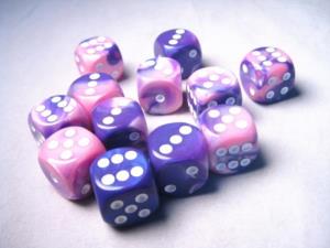 Diceblock - 12 16mm D6 - Gemini Pink-Purple with White (CHX26655)