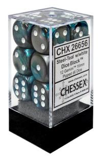 Diceblock - 12 16mm D6 - Gemini Steel-Teal with White (CHX26656)